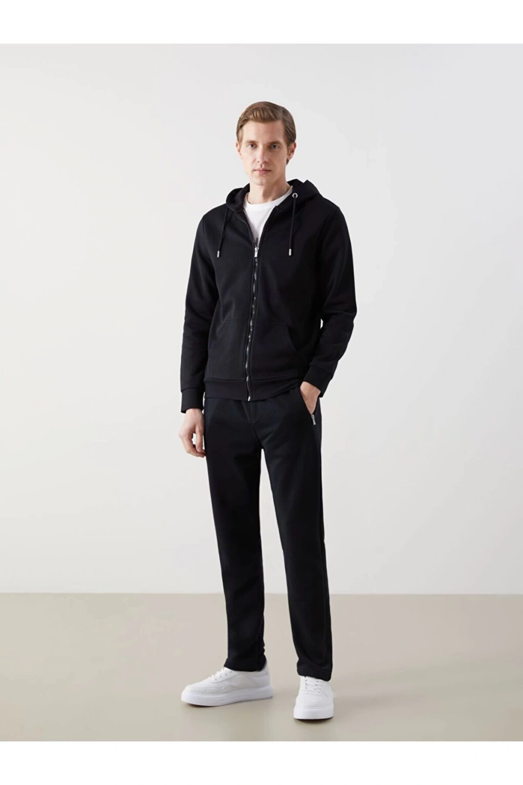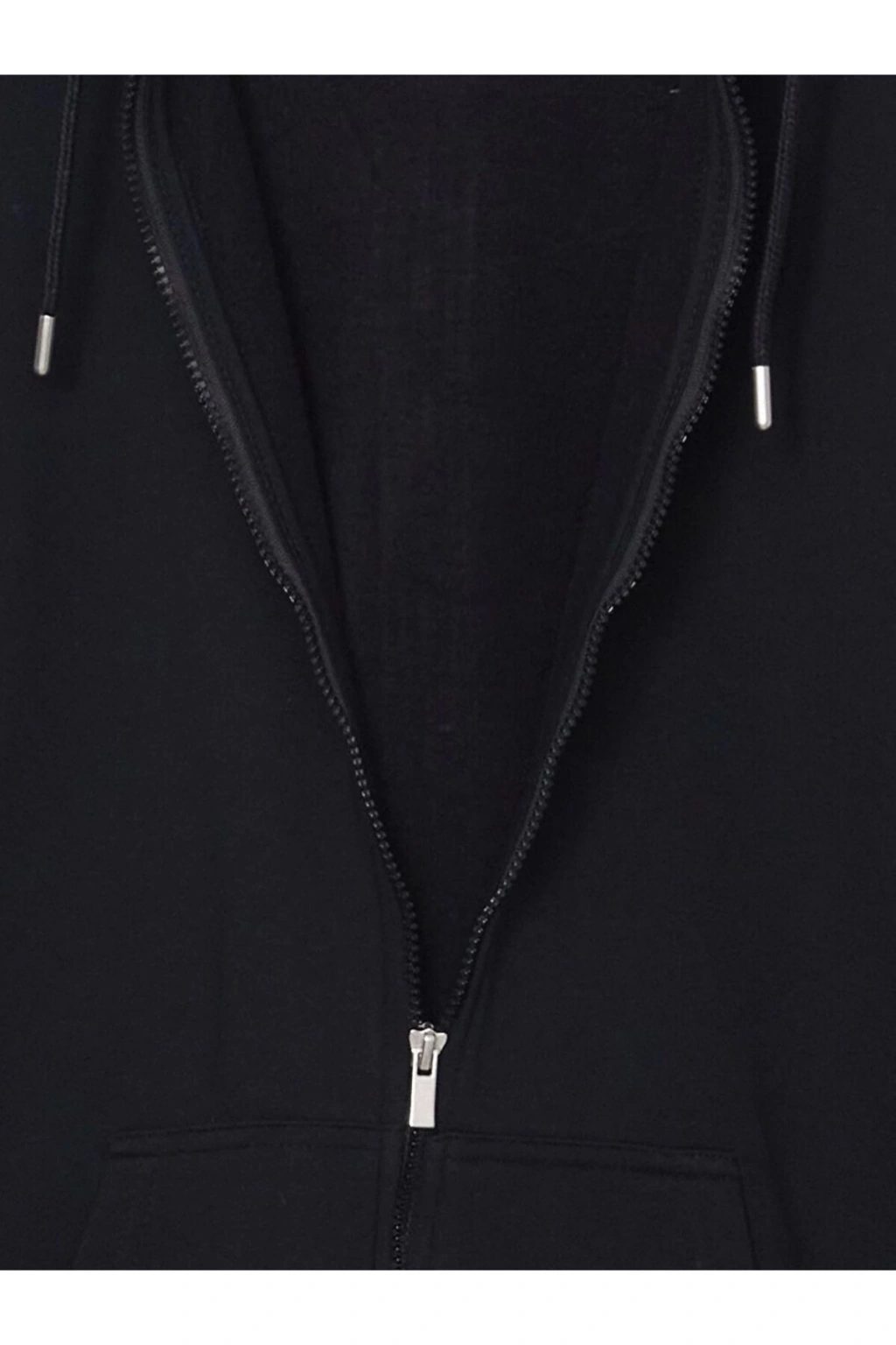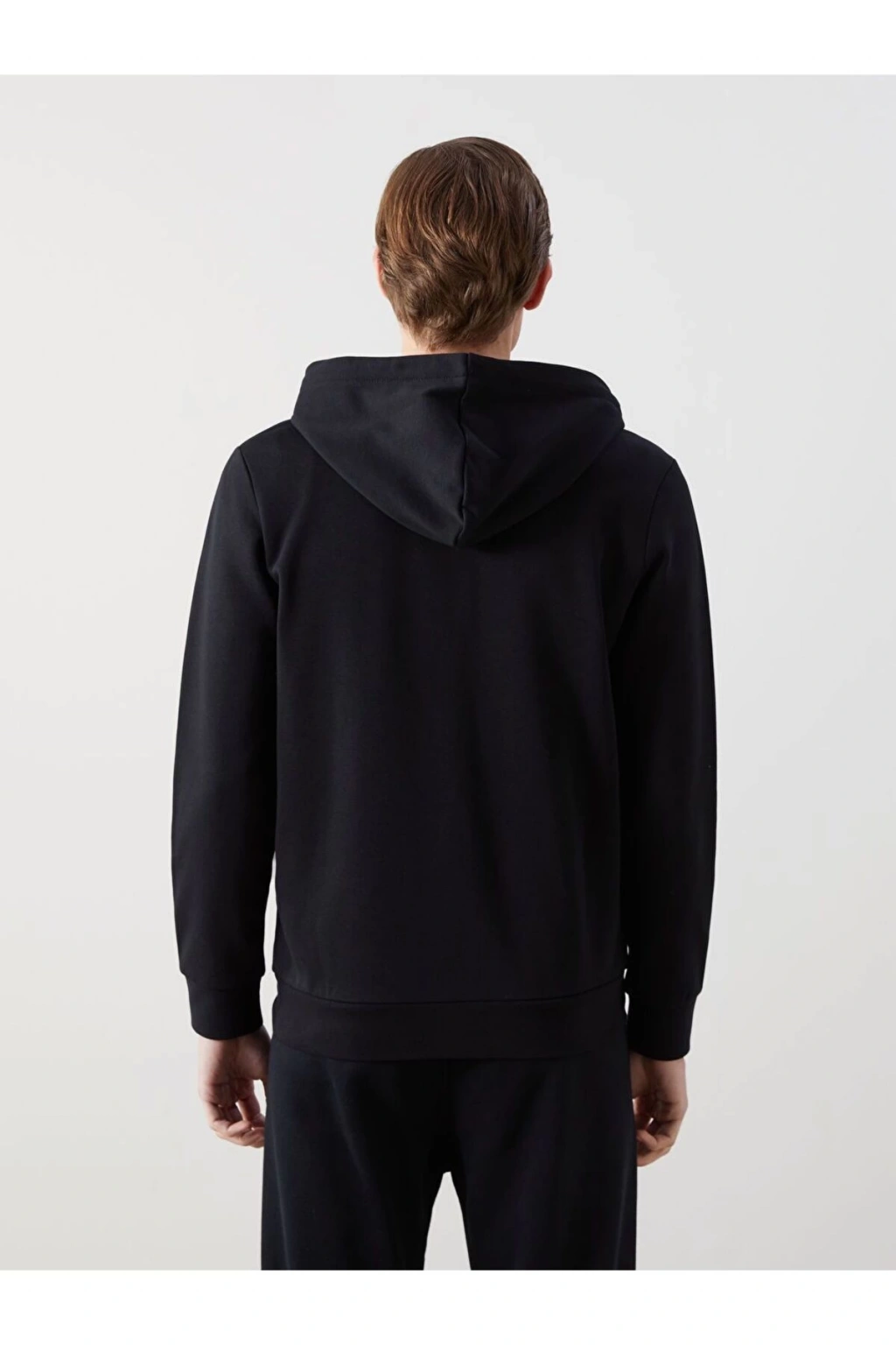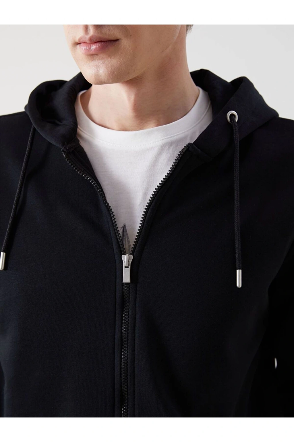 Basic Kapüşonlu Uzun Kollu Erkek Fermuarlı Sweatshirt