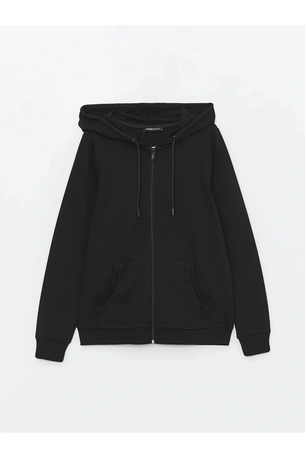 Classic Kapüşonlu Düz Uzun Kollu Kadın Fermuarlı Sweatshirt