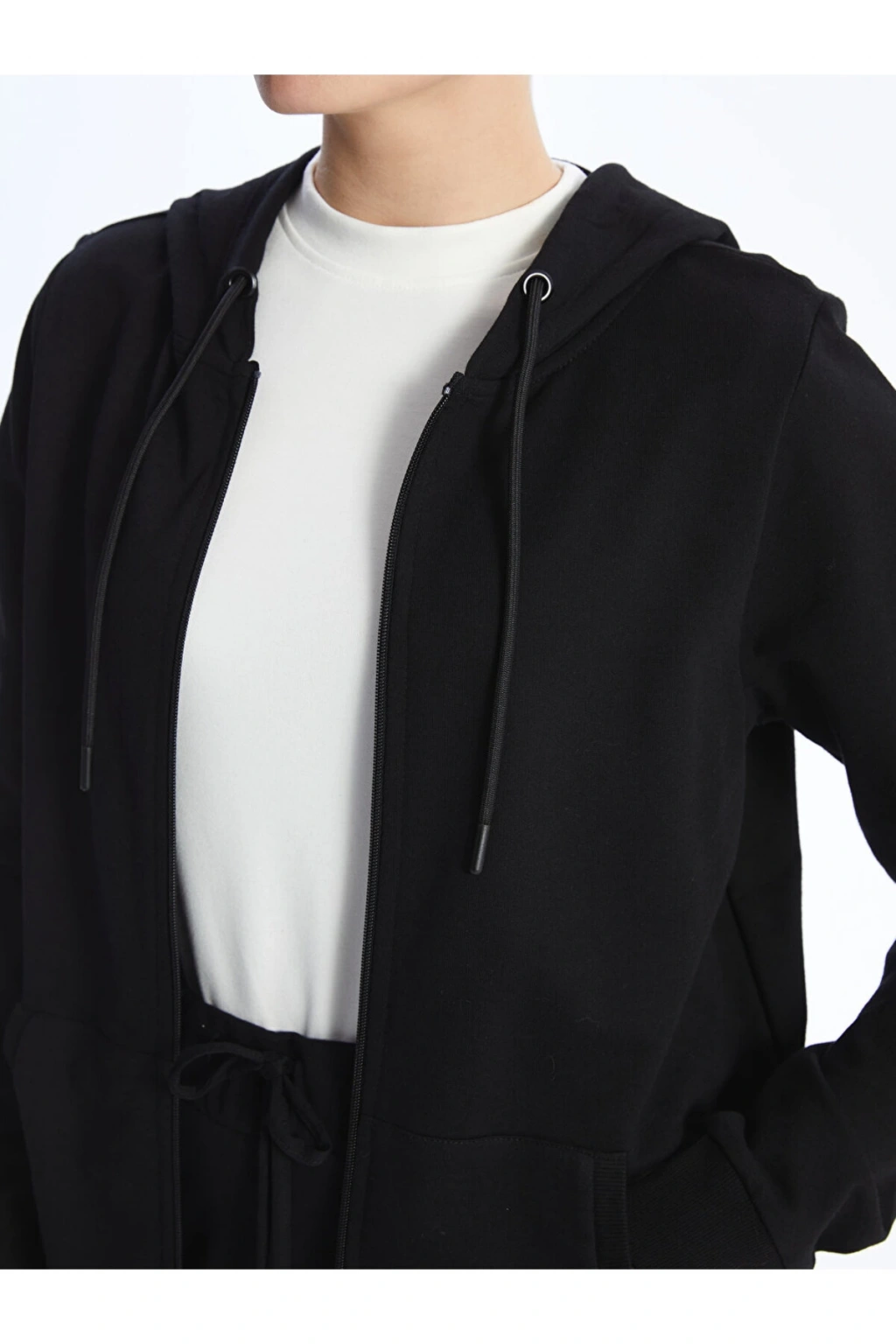 Kapüşonlu Düz Uzun Kollu Kadın Fermuarlı Sweatshirt