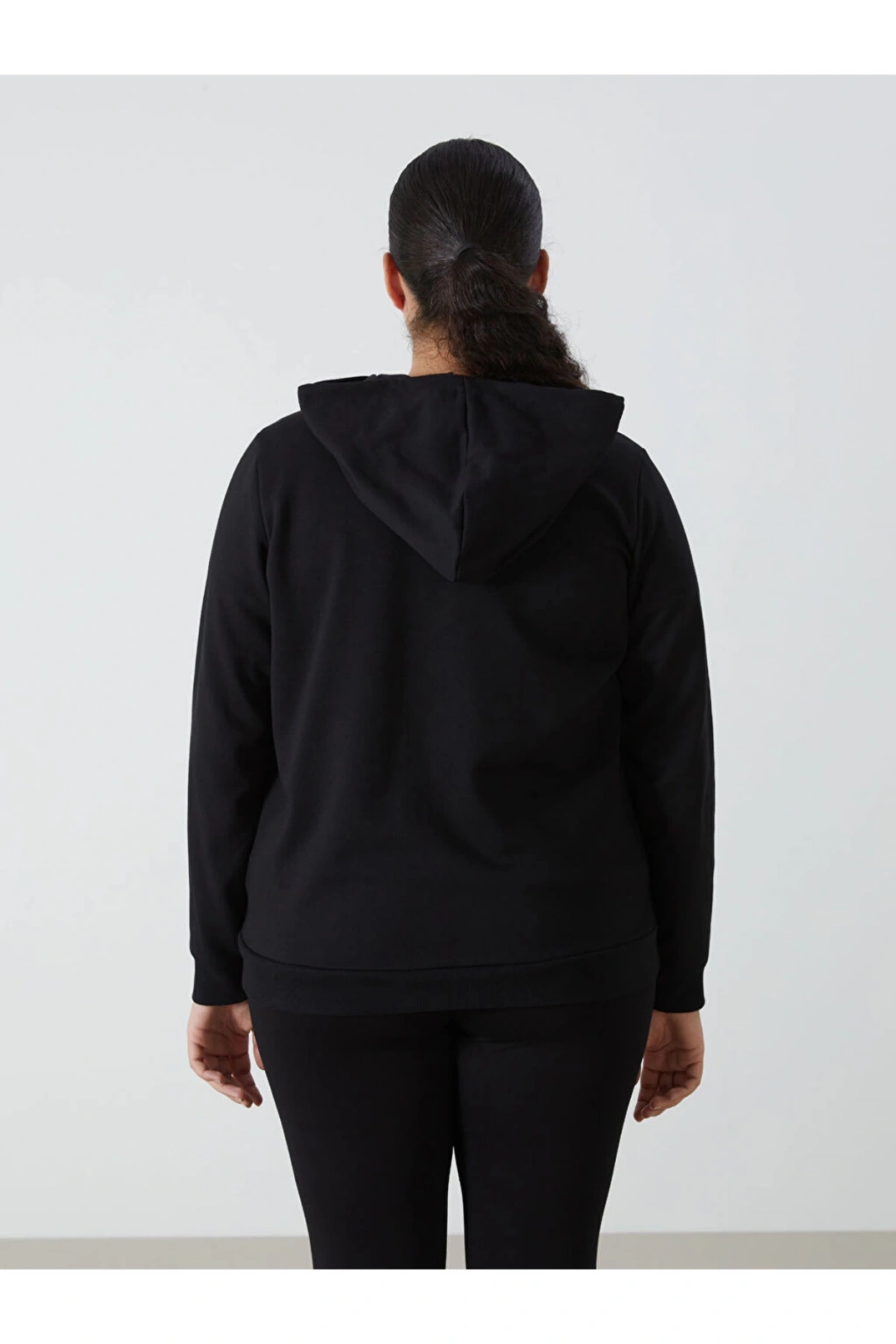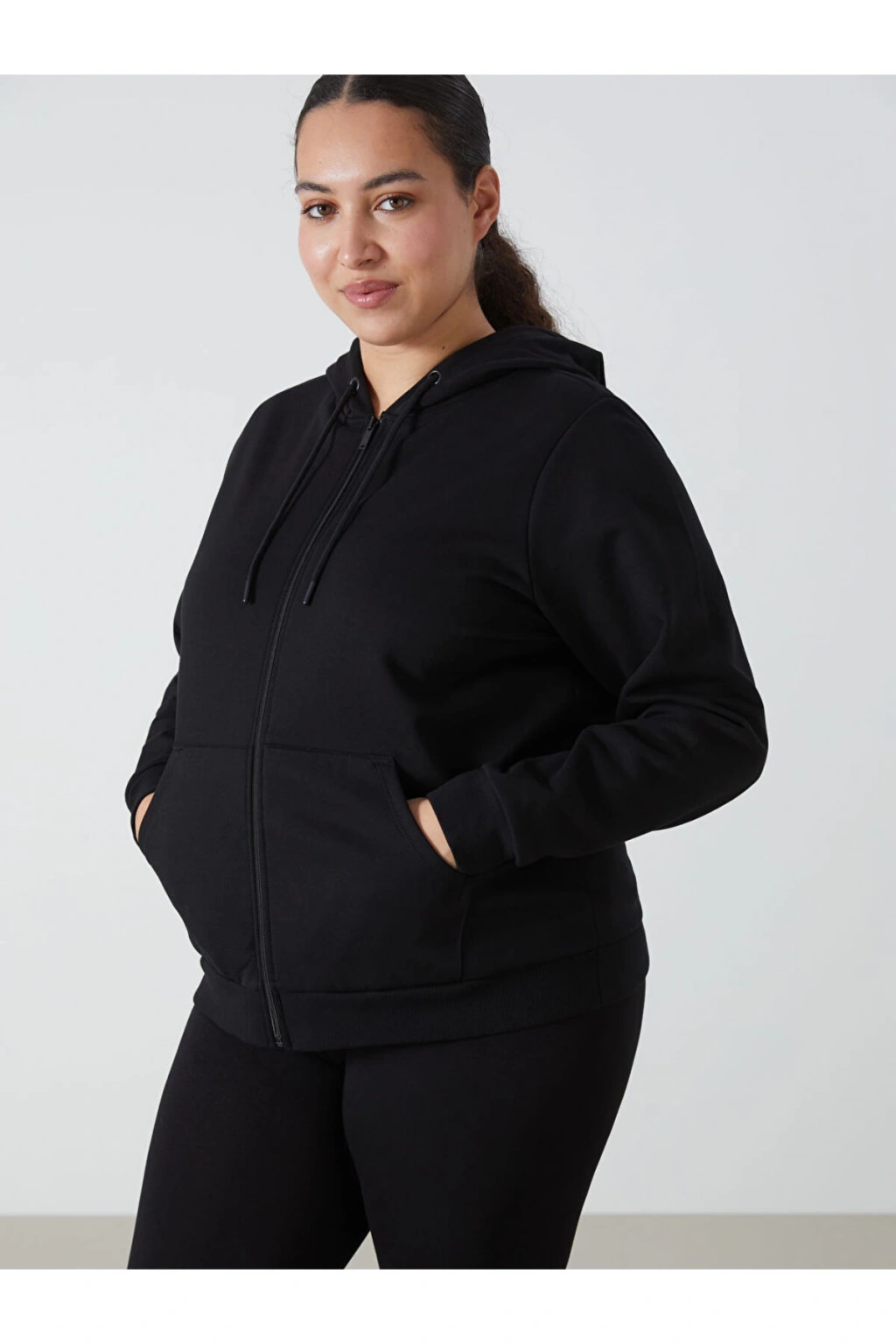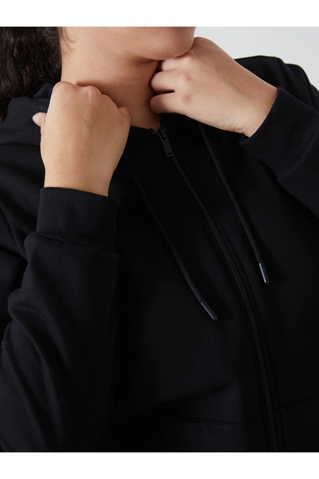 Kapusonlu Duz Uzun Kollu Kadin Fermuarli Sweatshirt - W49153Z8