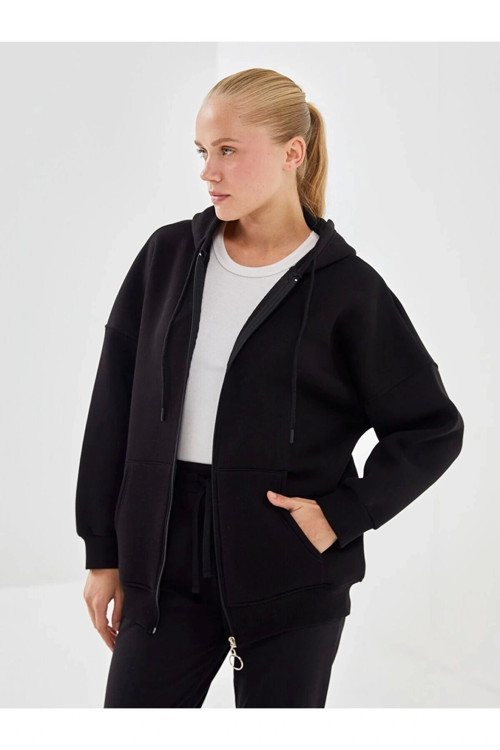 Kapüşonlu Oversize Kadın Fermuarlı Sweatshirt