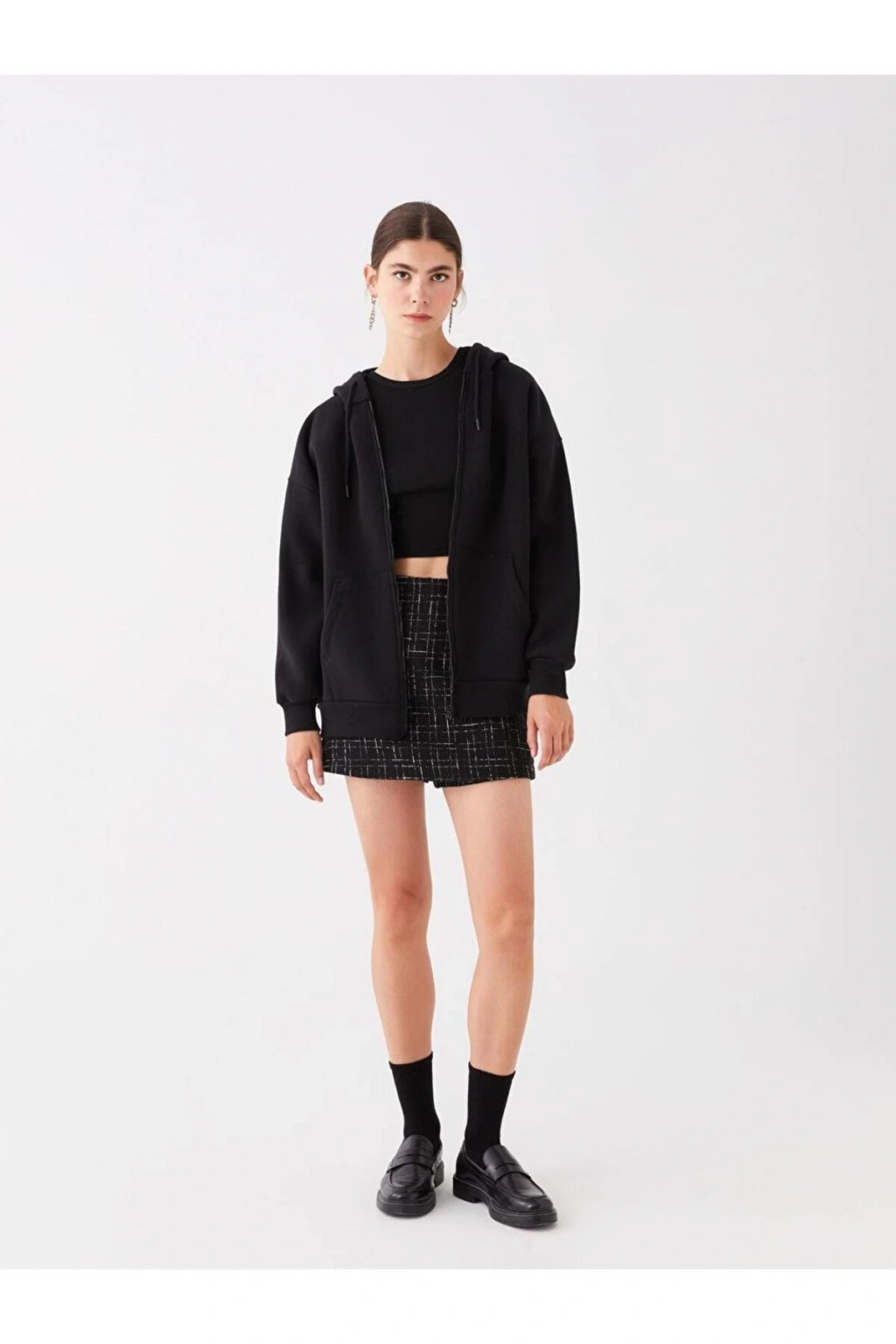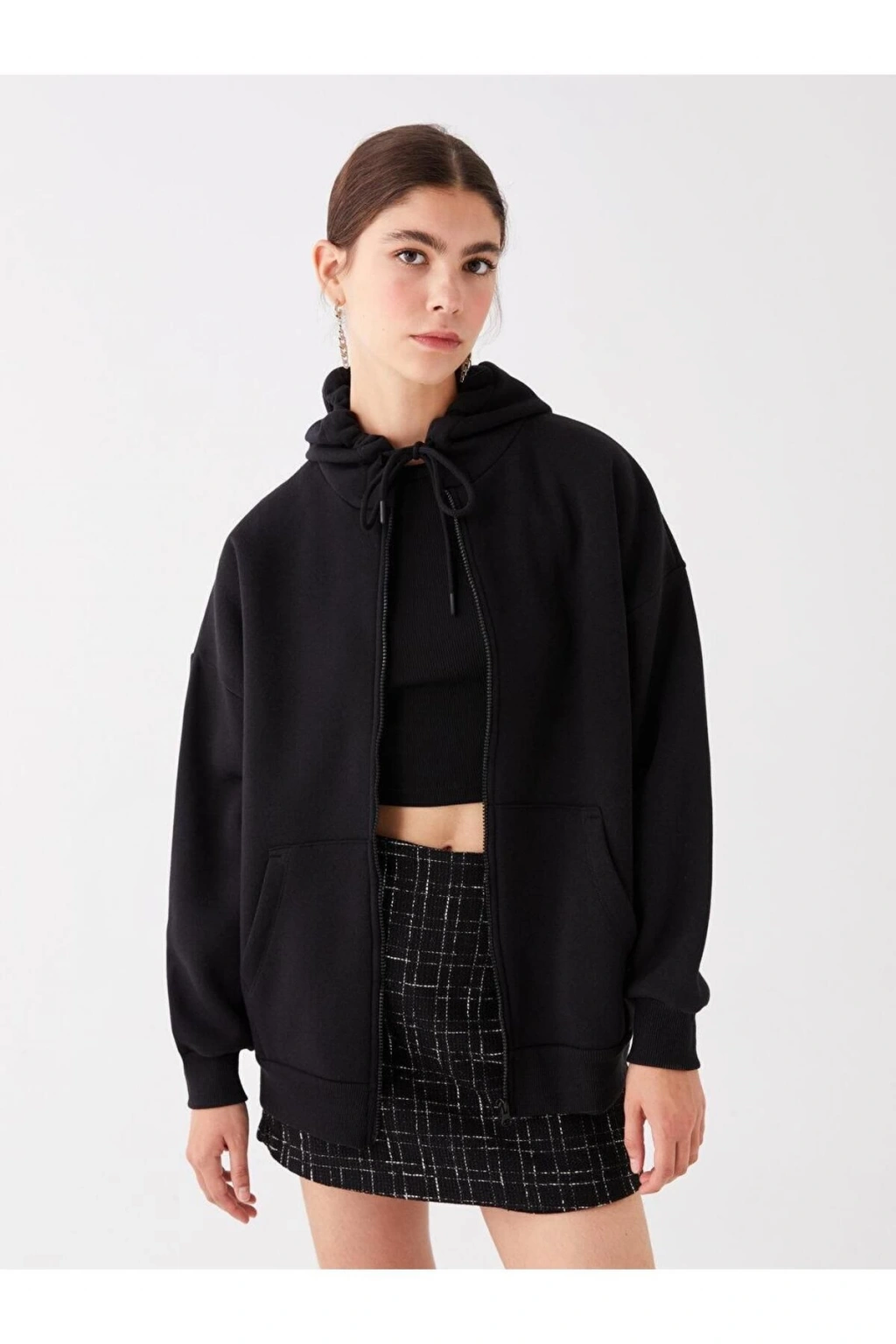 Kapüşonlu Oversize KadınFermuarlı Sweatshirt