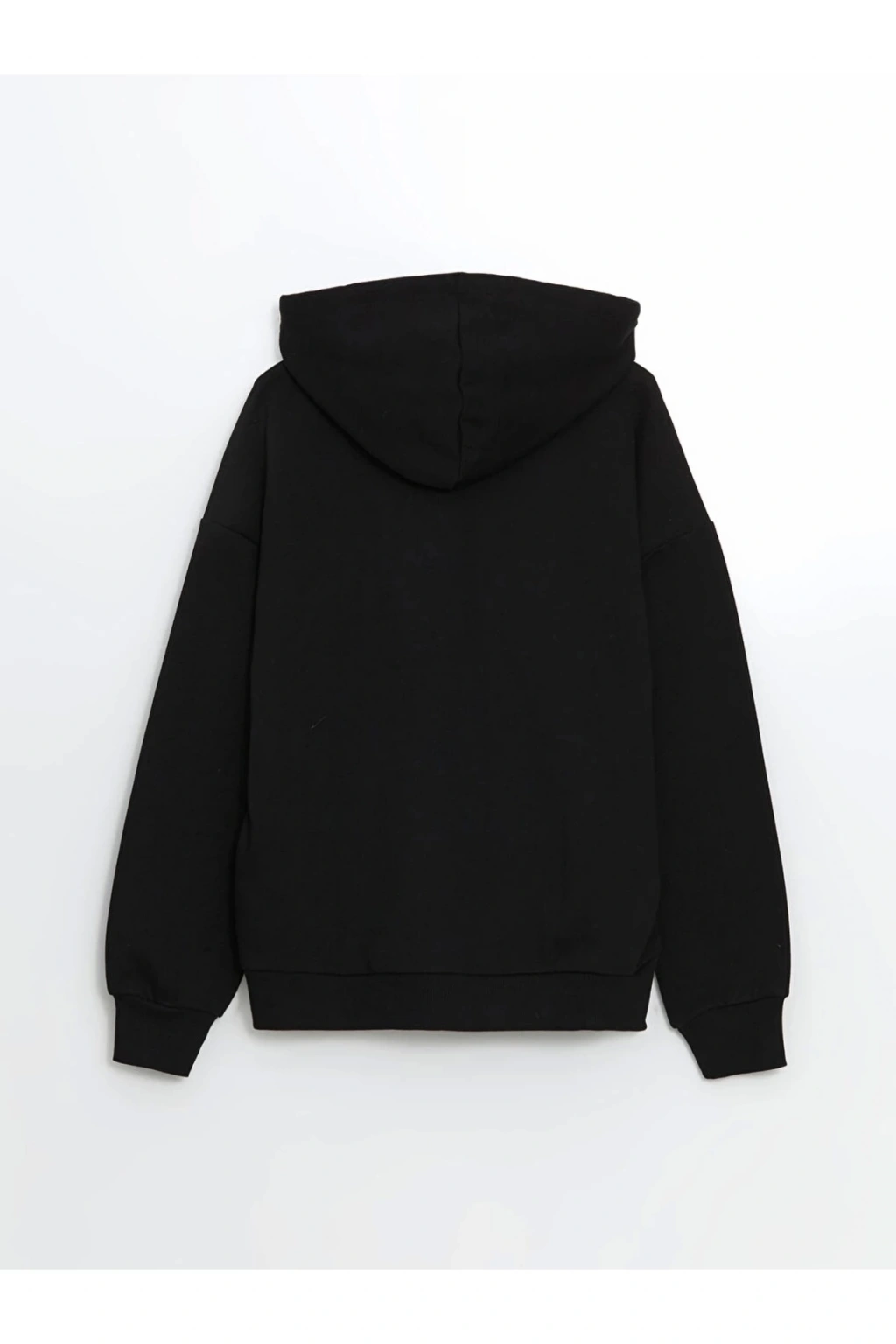 Modest Siyah Kapüşonlu Oversize Kadın Fermuarlı Sweatshirt