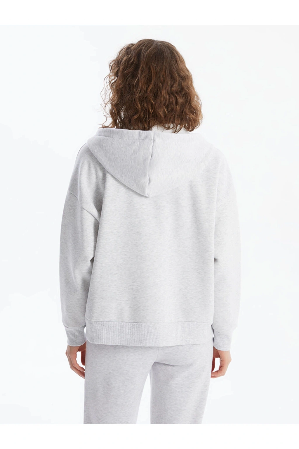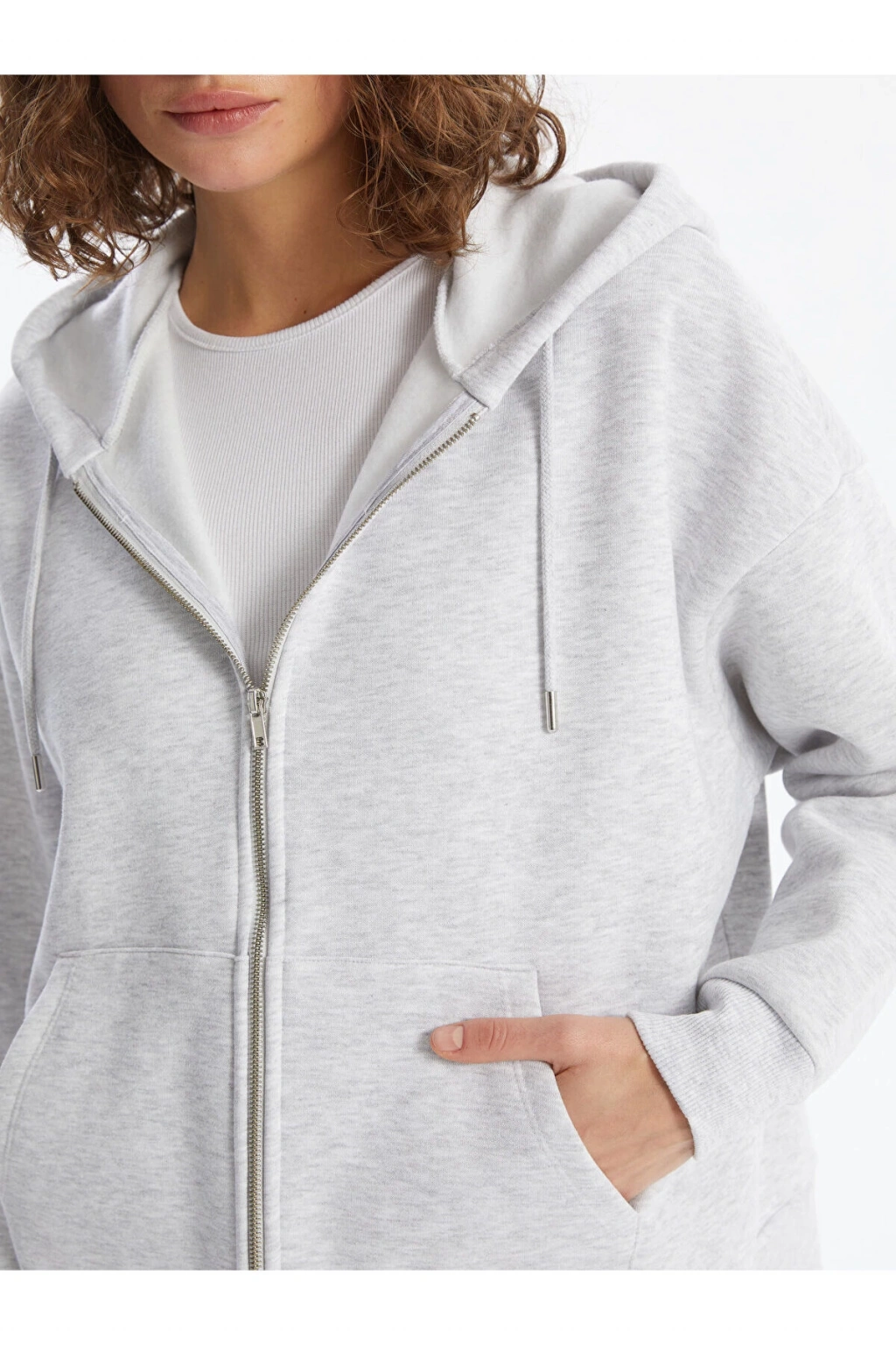 Vision Gri Kapüşonlu Oversize Kadın Kalın Fermuarlı Sweatshirt