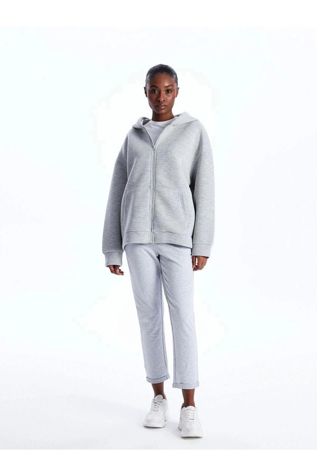 Vision Gri Melanj Kapüşonlu Oversize Kadın Fermuarlı Sweatshirt